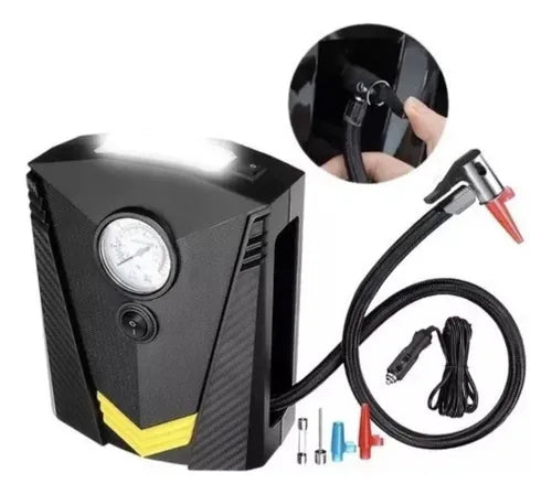 Lleva la seguridad y la conveniencia a donde vayas con este Compresor Inflador Portátil de 12V. Compacto, potente y listo para la acción, es la herramienta esencial que todo conductor y amante del deporte debe tener.