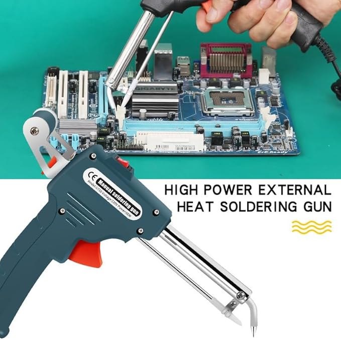 - Fácil de Usar (Operación con una Sola Mano): Su diseño ergonómico de pistola te permite sujetar la herramienta, presionar el gatillo para el estaño y mantener el calor aplicado simultáneamente, liberando tu otra mano para sostener componentes o placas.