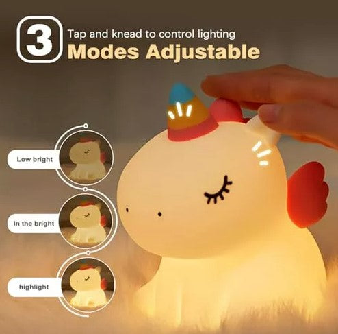 Este unicornio de diseño tierno no solo es una fuente de luz, sino también un hermoso elemento decorativo para cualquier mesita de noche o cómoda.