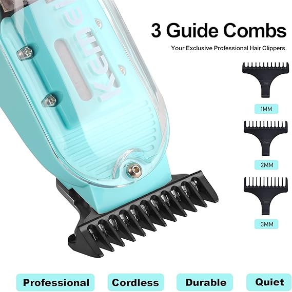 - Kit Completo de Peines Guía: Incluye 3 peines guía para diferentes longitudes, perfectos para lograr degradados, fades y mantener la barba a la medida exacta que deseas: 1mm, 2mm y 3mm.