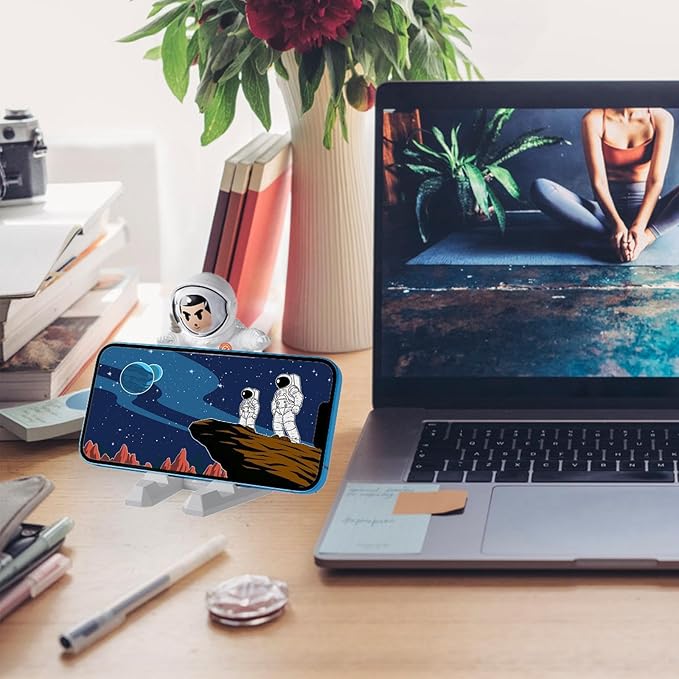 - Diseño creativo y divertido: El soporte tiene la figura de un astronauta, lo que lo convierte en un accesorio decorativo ideal para tu hogar, oficina o estudio.